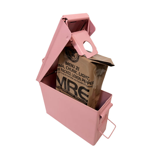 VALENTINES SPECIAL | Random 2025 Military MREs w/Pink Renewed - 30 or 50 Cal Ammo Can - Gift Set!