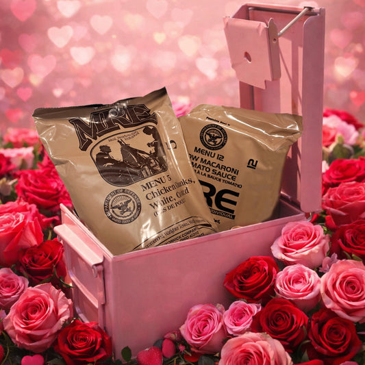 VALENTINES SPECIAL | Random 2025 Military MREs w/Pink Renewed - 30 or 50 Cal Ammo Can - Gift Set!