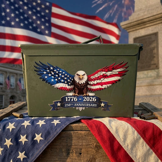 30 Cal, 50 Cal or Fat 50 Cal Ammo Can Used Grade 1 with UV Printed "Eagle 250th Anniversary"