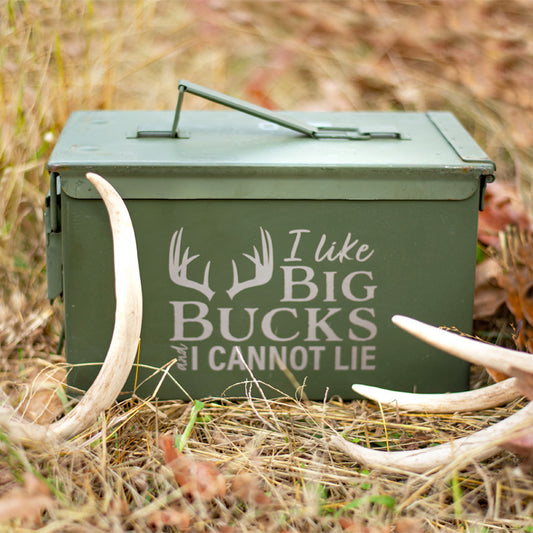 One (1) Laser Engraved "I LIKE BIG BUCKS AND I CANNOT LIE" Used Grade 1 Ammo Can with or w/o Lock Kit - Choose from 30cal, 50 Cal or FAT 50 Cal