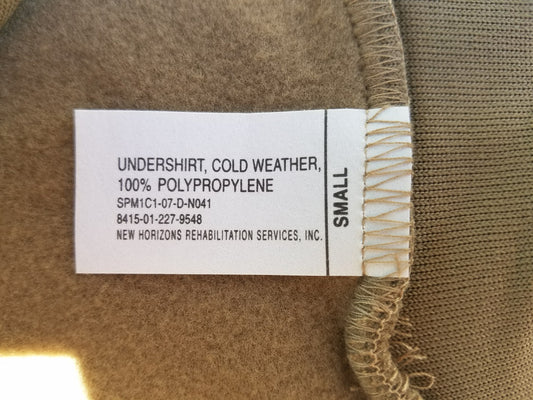 Genuine Military Coyote Polypropylene Cold Weather Undershirt - New