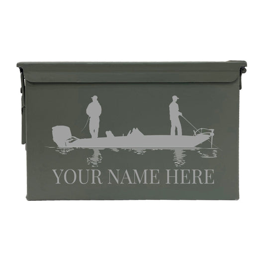 Fishing Combo Gift Set - Spincast Pocket Combo, Tackle Box and Personalized Laser Engraved Used Fat 50 Cal Ammo Can [YOUR NAME]"