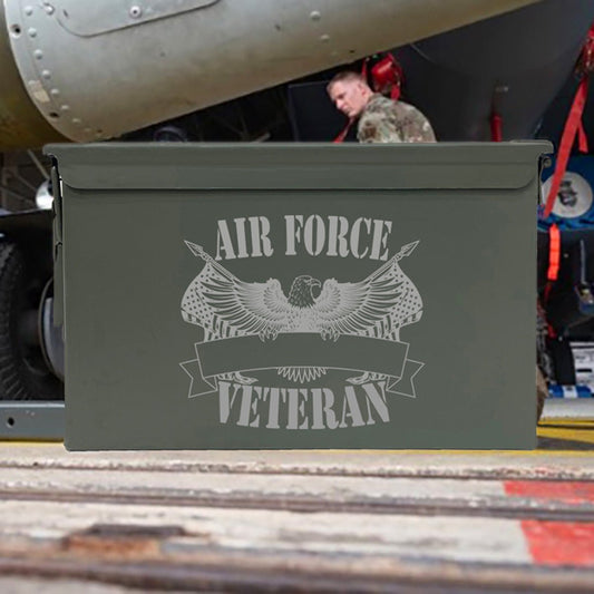Laser Engraved - AIR FORCE - Veteran [YOUR NAME] Used Grade 1 Ammo Cans - 30 Cal, 50 Cal or Fat 50