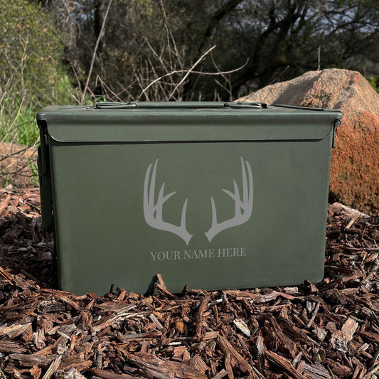 Laser Engraved ANTLERS [YOUR NAME] Used Grade 1 Ammo Cans - 30 Cal, 50 Cal or Fat 50