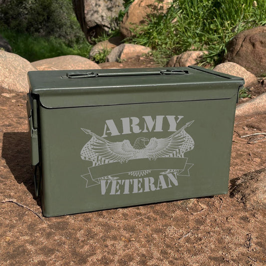 Laser Engraved - ARMY - Veteran [YOUR NAME] Used Grade 1 Ammo Cans - 30 Cal, 50 Cal or Fat 50