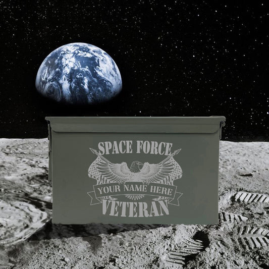 Laser Engraved - SPACE FORCE - Veteran [YOUR NAME] Used Grade 1 Ammo Cans - 30 Cal, 50 Cal or Fat 50